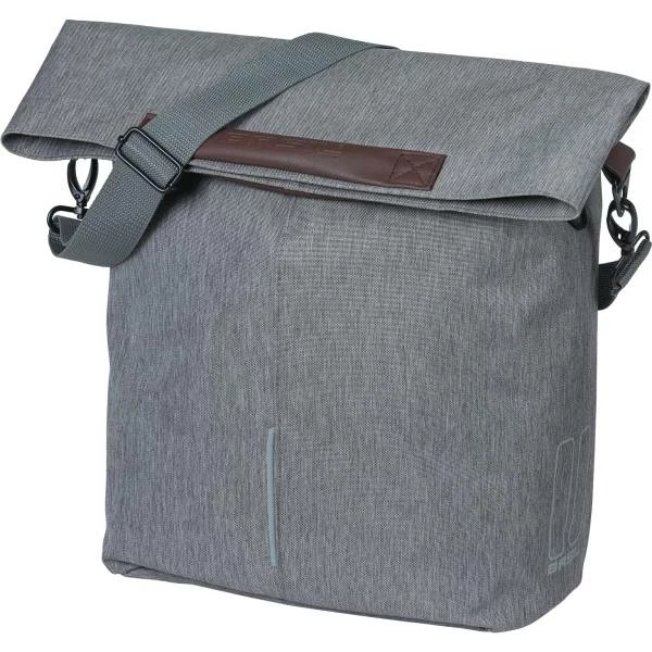 Basil shoppertas City Shopper, polyester, waterkerende vouwsluiting met magneet, incl. afneembare schouderband, vegan leder handgrepen, binnenvak met rits, bevestigingsmogelijkheid LED, Hook-On systeem, reflectie op alle zijden, 14-16L, grey melee