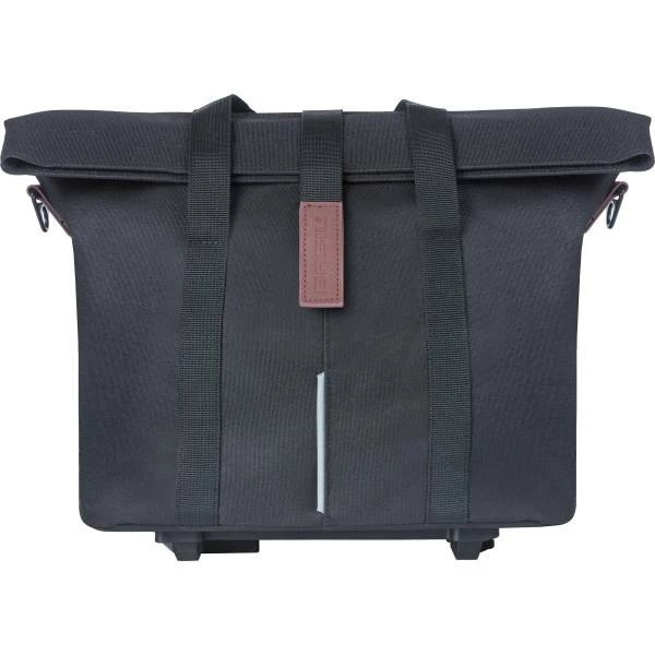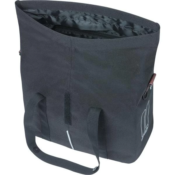 De enkele fietstas van Basil is geschikt voor de bagagedrager of het stuur van een dames- of herenfiets.