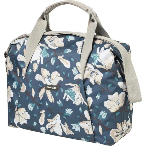 De Basil Magnolia Carry All Bag is een enkele fietstas voor dames en is eenvoudig te monteren aan de bagagedrager van je fiets.