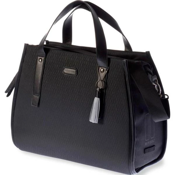 De Basil Noir schoudertas is een waterdichte hand- en schouderfietstas die met het Hook-On System op de bagagedrager kan worden bevestigd.