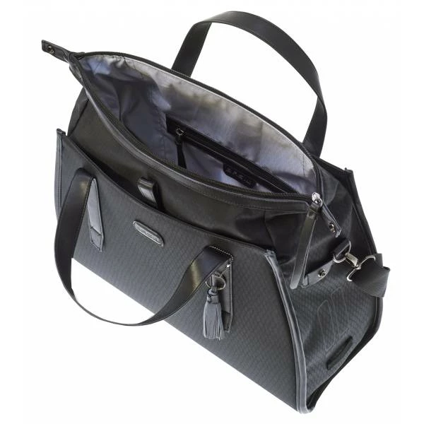 BASIL NOIR BUSINESS BAG, fietstas, zwart-op-zwart cobra print, vegan leather det., binnenvak, voorvak, hengsels, afn. schouderriem, bev. mogelijkheid LED, Hook On-system, reflectie, refl. tastassel, roltopsluiting, waterdicht (IPX 3), polyester, inh. 17L, midnight black