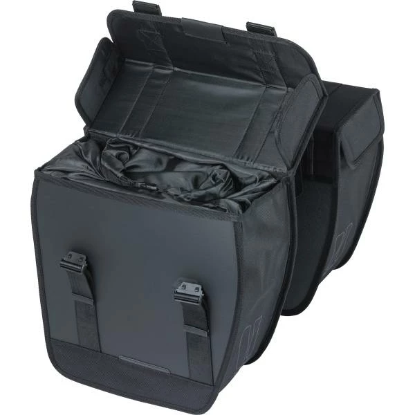 De Basil Tour dubbele fietstas in een grotere uitvoering is een luxe fietstas met een inhoud van 28 liter.