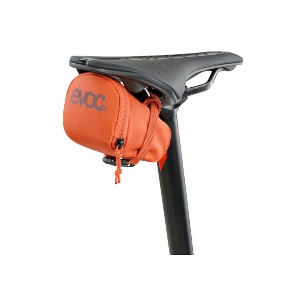 Deze zadeltas van Evoc biedt voldoende ruimte voor gereedschap en energierepen onder je fietszadel, dus hoef je niet alles in de achterzak van je fietsshirt te stoppen.
