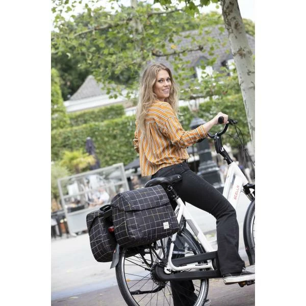 Deze moderne dubbele tas staat vrolijk op elke fiets!