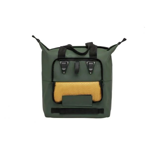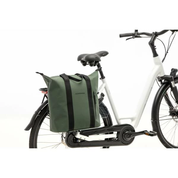 Als je de tas van de fiets haalt, dek je de haken af met een ritsvakje waardoor de tas eruit ziet als een mooie moderne shopper.