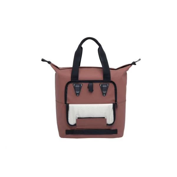 Als je de tas van de fiets haalt, dek je de haken af met een ritsvakje waardoor de tas eruit ziet als een mooie moderne shopper.