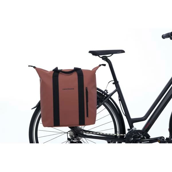 De fietstas wordt aan de bagagedrager bevestigd met New Looxs kunststof haken.