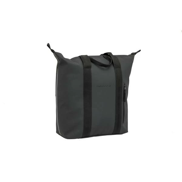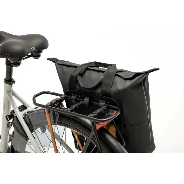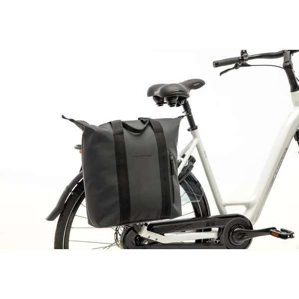 Als je de tas van de fiets haalt, dek je de haken af met een ritsvakje waardoor de tas eruit ziet als een mooie moderne shopper.