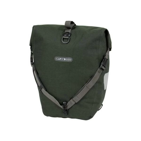 Klassieke, urbane achterwieltas met rolsluiting; afneembare schouderriem;