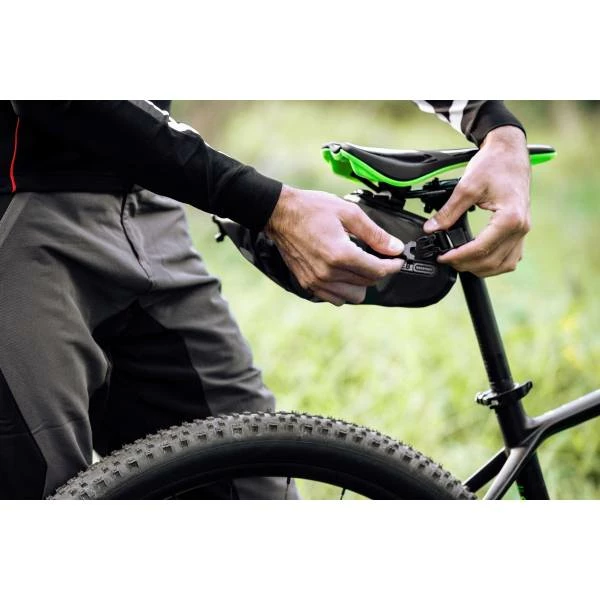 Bovendien is de kliksluiting compatibel met het vorige model van de Saddle-Bag Two – zo kan ze bv. voor verschillende fietsen gebruikt worden. Voor extra stabiliteit zorgt een klittenband aan de zadelpen die het ongewenste heen en weer schommelen verhindert.