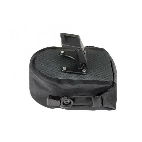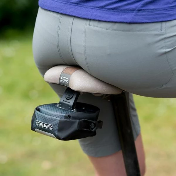 De rolsluiting, met zijn rubberen koordjes, stelt je in staat om de tas bijzonder compact en dicht bij het zadel te houden.