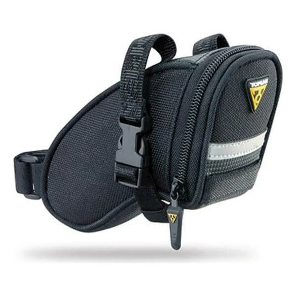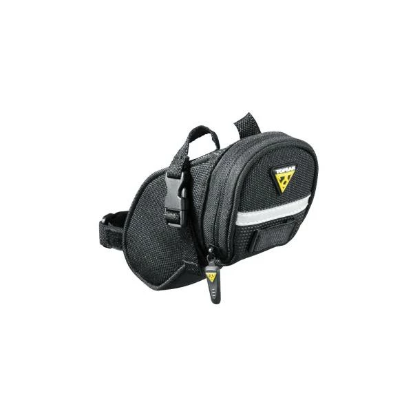 Aerodynamische lichtgewicht zadeltas van Topeak, speciaal geschikt voor bevestiging aan sportieve zadels. Bevestiging door middel van riempjes met gespen. Voorzien van 3M reflectiemateriaal en strap (riempjes) bevestigingsysteem. De fietstas is voorzien van teflon coating.
