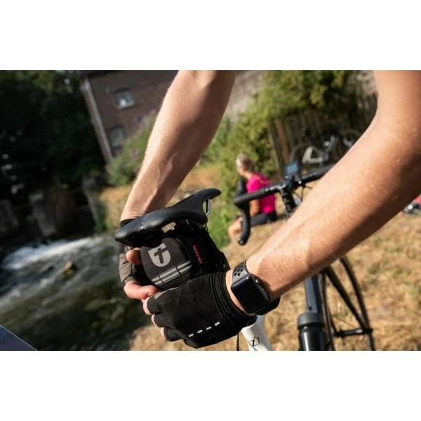 Het strap systeem kan worden bevestigd onder het zadel van elke fiets met standaard rails.
