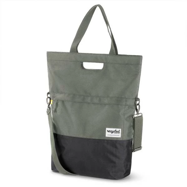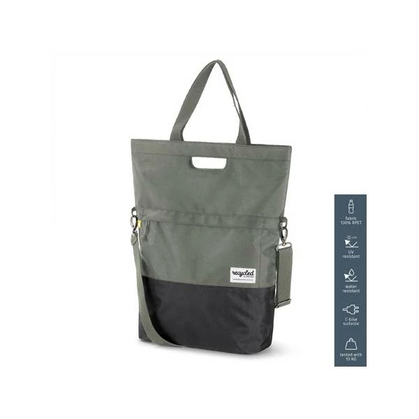 Het is een duurzame tas gemaakt van gerecycled PET materiaal (RPET).