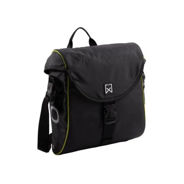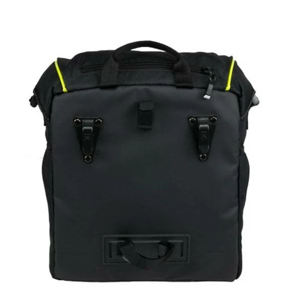 De reflecterende bies zorgt voor goede zichtbaarheid en door de ruime inhoud, 12 liter, is er genoeg plaats voor je jas of boodschappen.