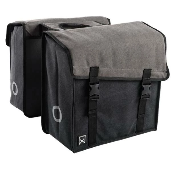 De Willex dubbele canvas101 fietstas grijs/zwart is een supersterke moderne praktische fietstas met een inhoud van 38 liter voor dagelijks gebruik.