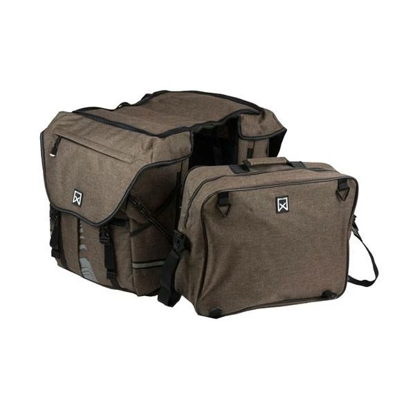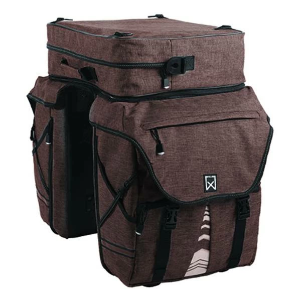 De Willex XL 1200 dubbele fietstas is een compacte dubbele fietstas, aan beide zijden vergrootbaar met extra rits.