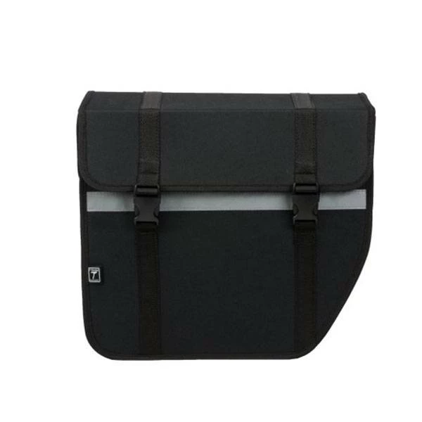 Deze sterke polyester tas is afgeschuind zodat u niet met de hiel tegen de tas aankomt tijdens het fietsen.
